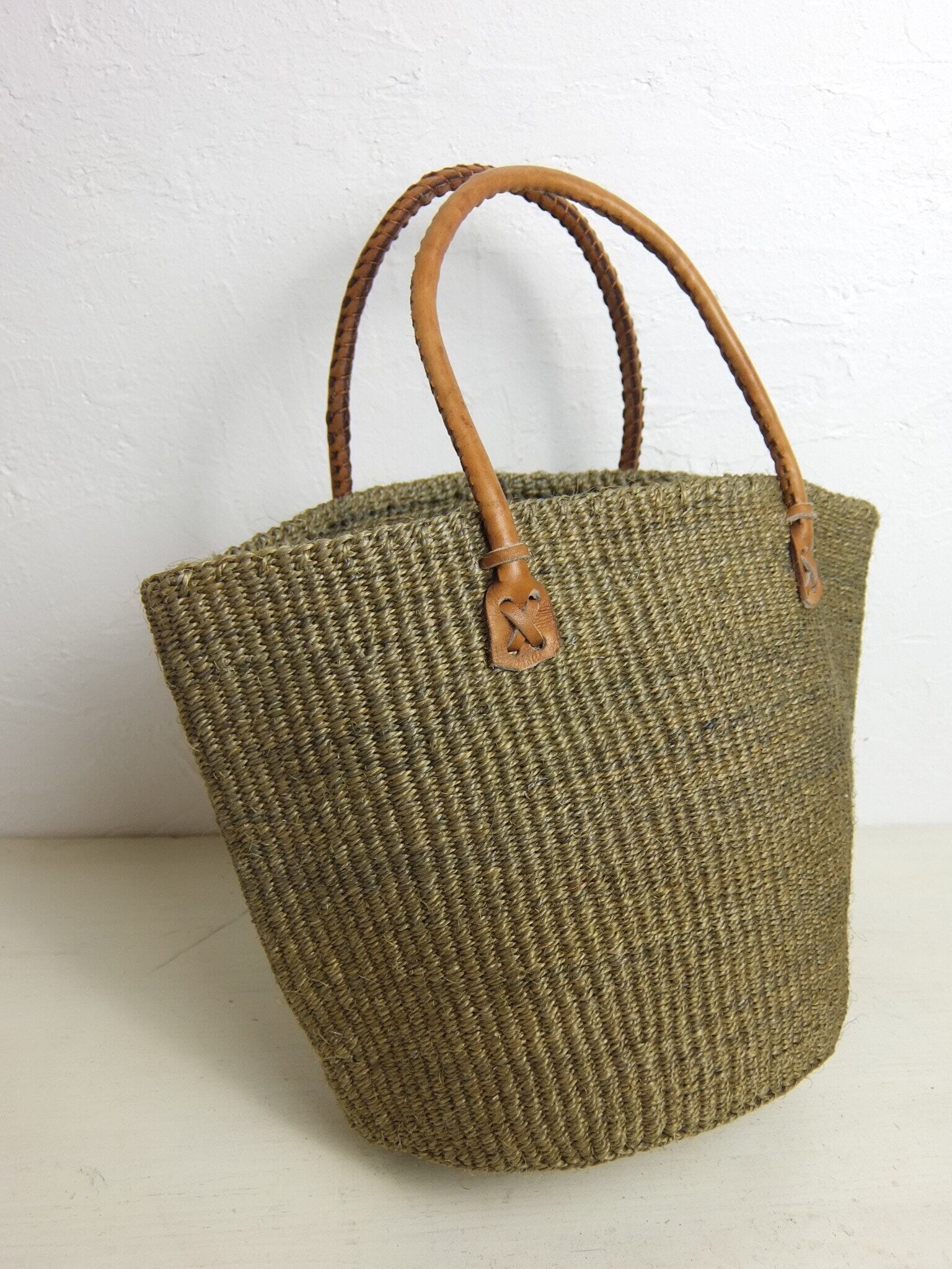 グレーとカーキの中間色のようなサイザルBag