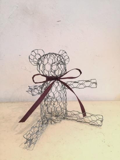 ワイヤーの お座りしたクマ お好みでリボンで飾ったり 約 H17cm *多少の歪みなどはご理解ください