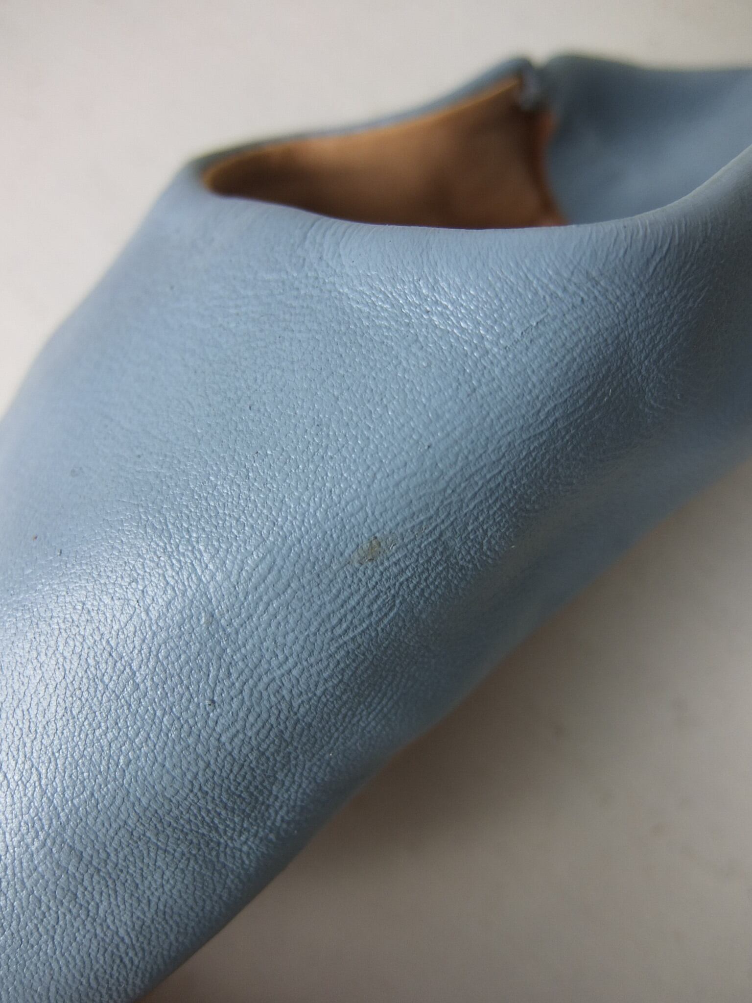 *化学薬品や漂白剤を一切使用しない、モロッコ本来の伝統的な手法でなめされています。そのため革特有の臭いが生じますが、肌に優しく、風合いの際立つモロッコ革製品の特徴がいかせます。感じ方に個人差はございますが、この臭いは履き込むうちに薄れていきます。ほとんんどのお客様は気にならない程度ですが、自然の革を使用しているため、ちいさなしみや傷が若干ある場合があります。ボンドやのりの跡、革にもともとあるシミなどです。 また、湿気に弱いので保管については風通しの良い場所をおすすめします。また、中敷きのスポンジなどは商品によってかたちにばらつきがあります。履いた感じの違いなどある場合でも、スポンジは履き込む内にぺたんとしていきます。革も足のかたちに伸びていきます。履き込みの感触の相違は若干ある場合があります。ナチュラル(生成)の革や顔料ではないナチュラルペイントの茶色やイエローなどは他の色にくらべシミや傷、においが目立ちます。ナチュラル(生成・ヌメ革)は使い込む内に革の色は風合いのあるものにかわっていきます。